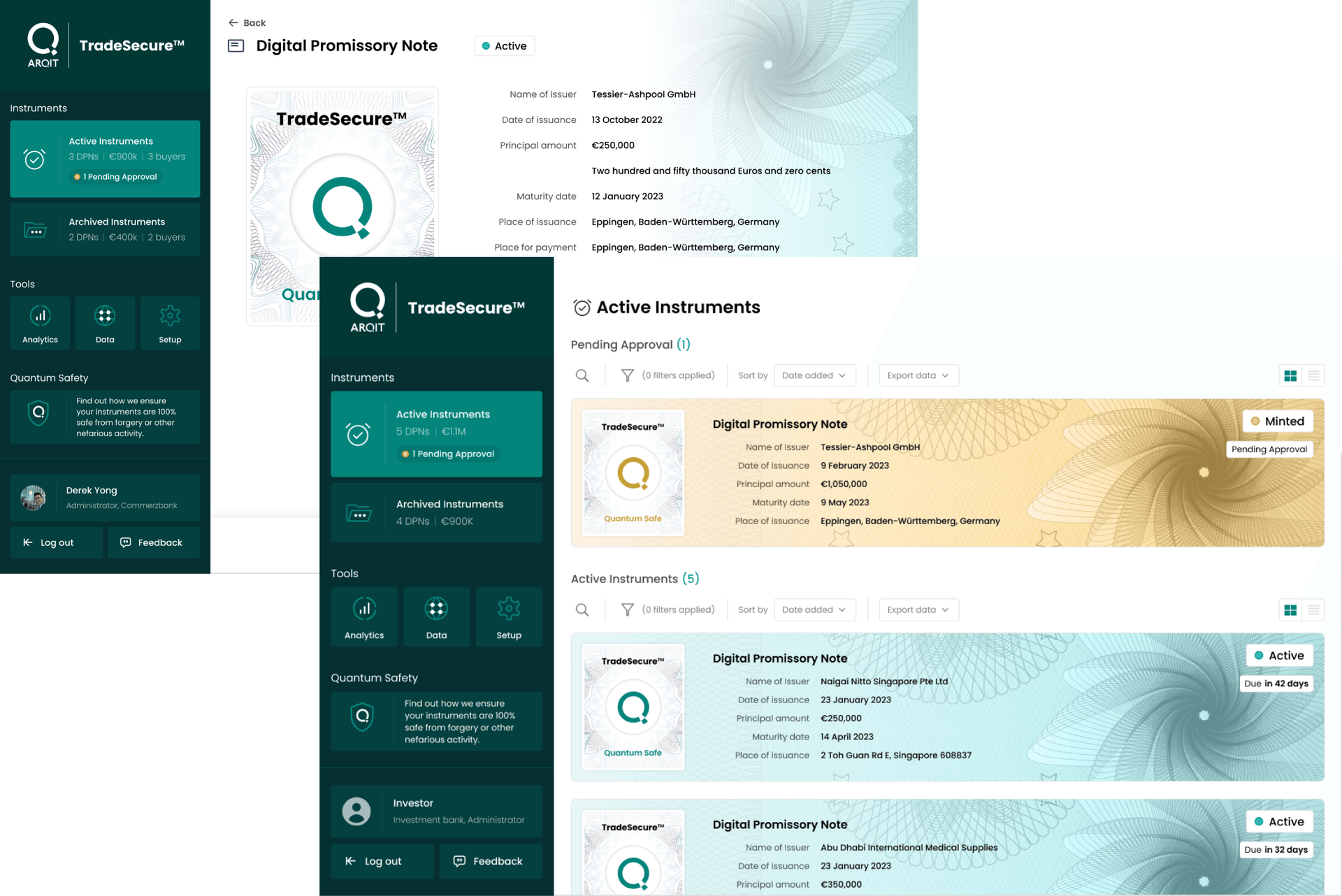 Creating new, digitally-native financial instruments, based on some of the oldest paper instruments known was ambitious to say the least. We’d need to engineer the product using blockchain and proprietary Arqit quantum-safe encryption technologies. And we needed to create a software platform that would allow users in SCF to create, adopt, use and eventually trade these instruments.