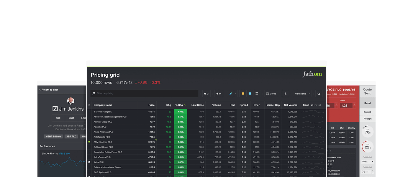 With an extensive built-in tool set and fully integrated search support, as well as RFQ ticketing flows and contextual market depth information panel, stunning data visualisation capacity and a responsive multi-channel design, the Fathom HTML5 Supergrid accelerates the adoption of modern web technology into your business.
